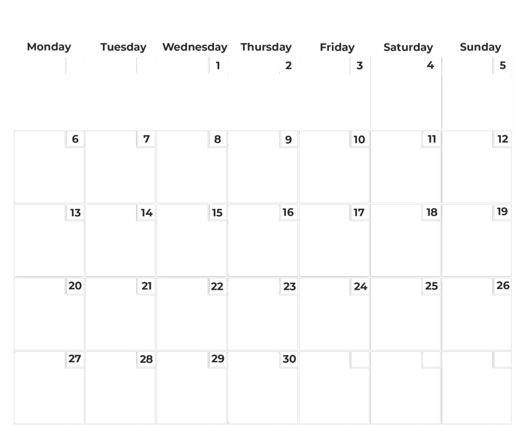 Updated weekly. Monthly preview below but times may change.